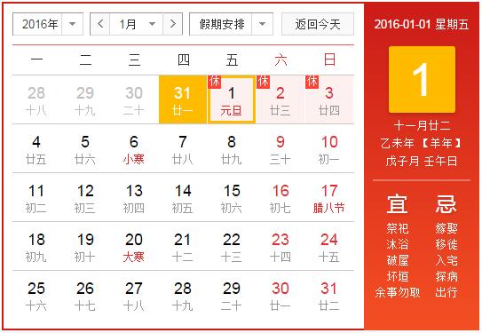 2016年1月1日(星期五)為國家法定節(jié)假日。